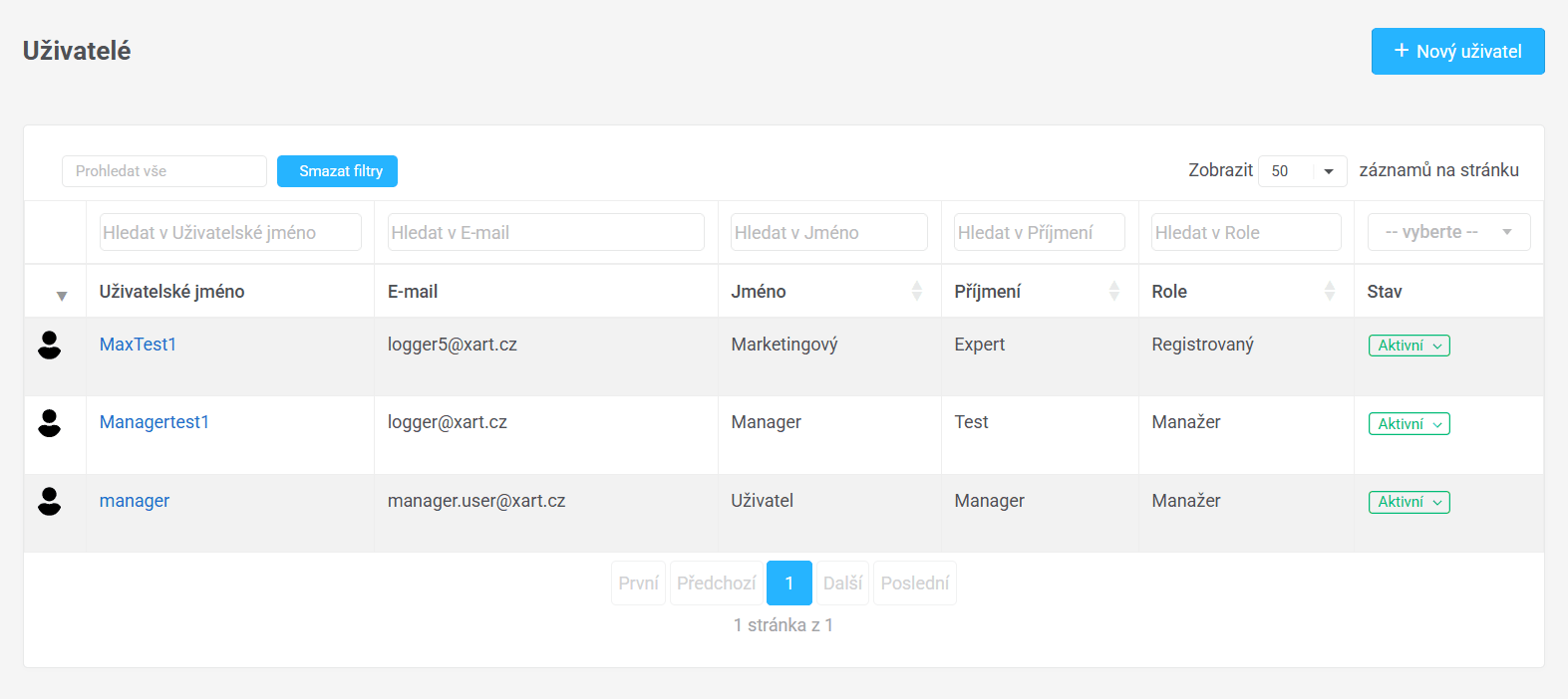 - manažer vidí seznam uživatelů se stejnou nebo nižší rolí