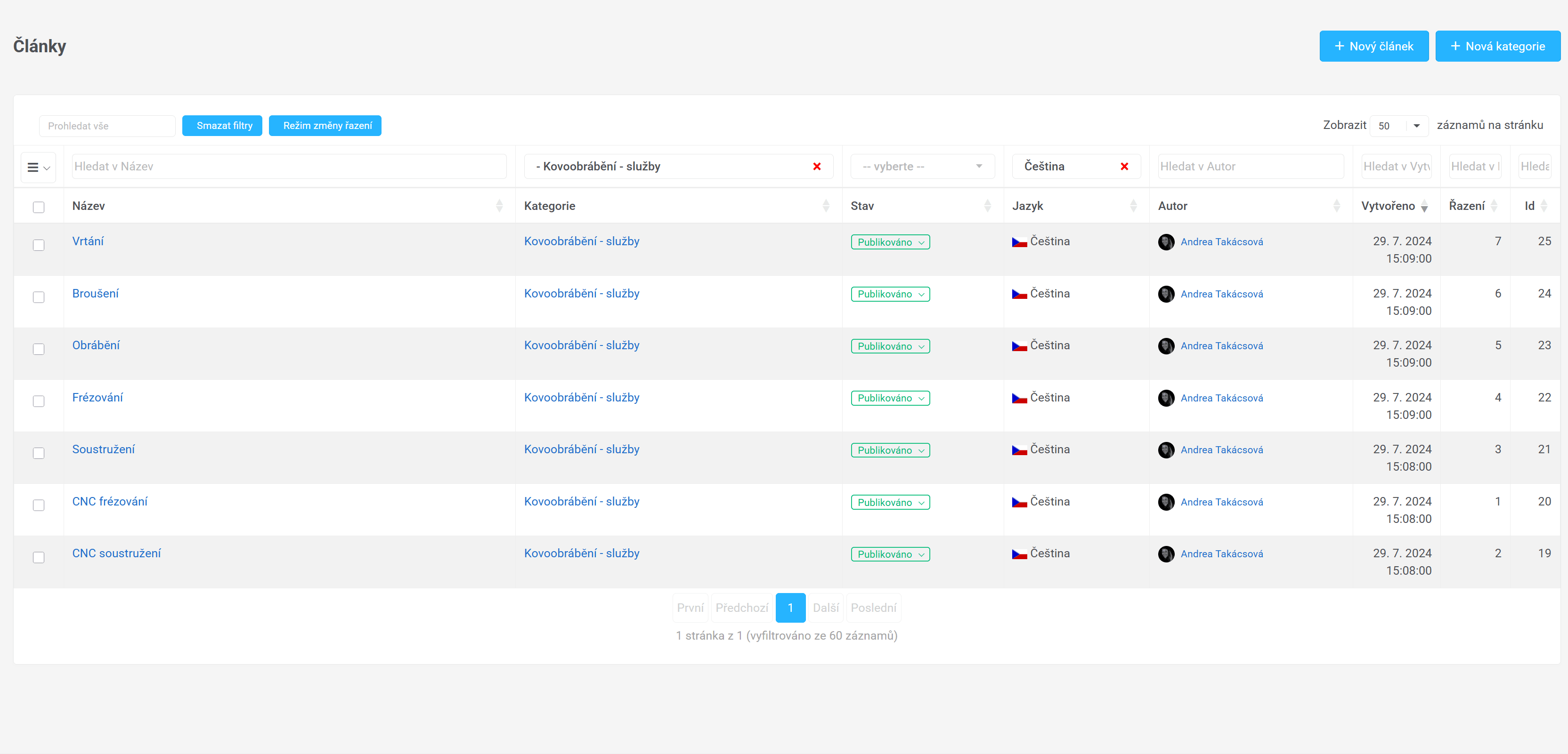 - články - automaticky se vytvoří i příslušné ekvivalenty kategorií, pokud neexistují