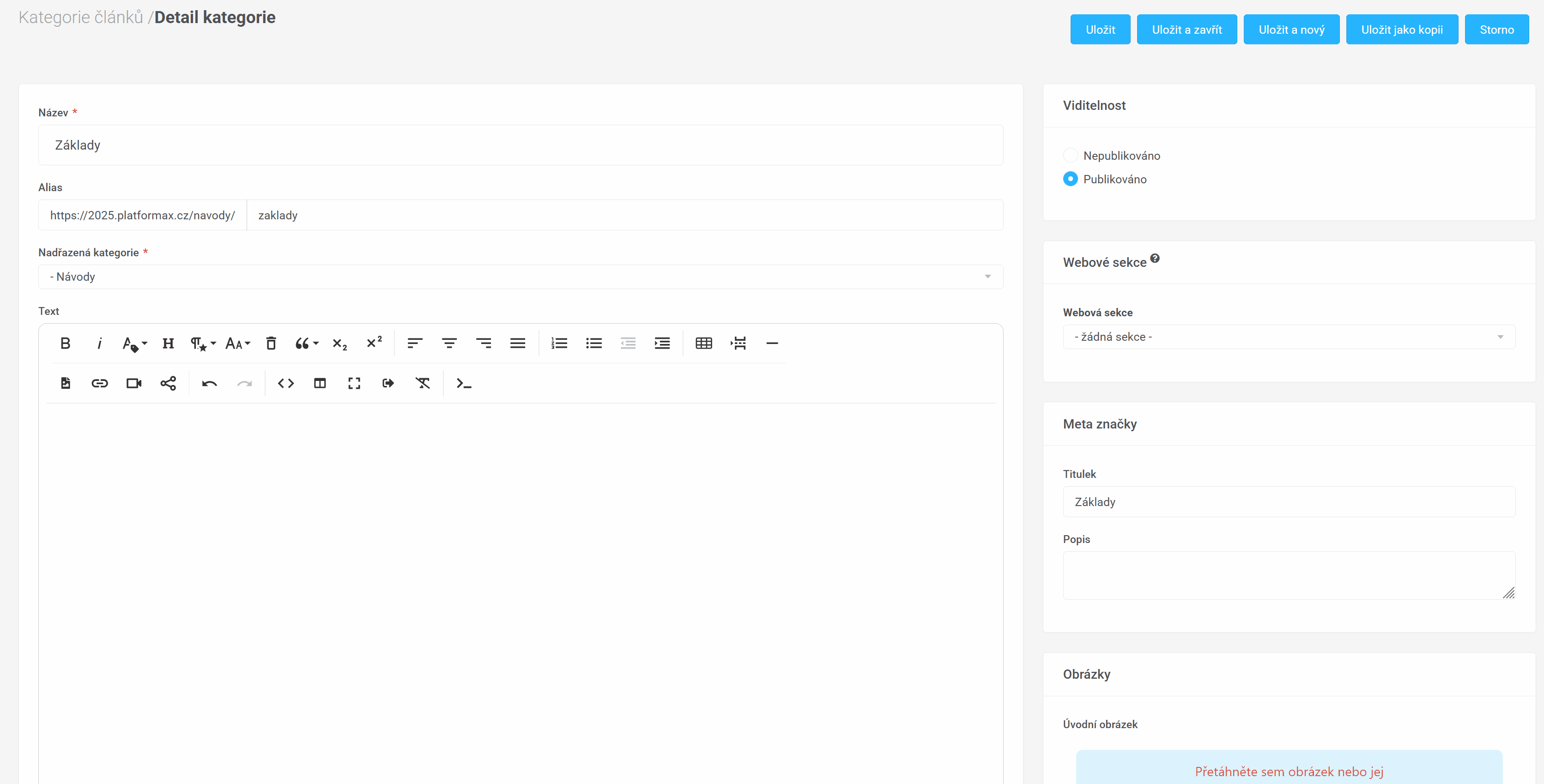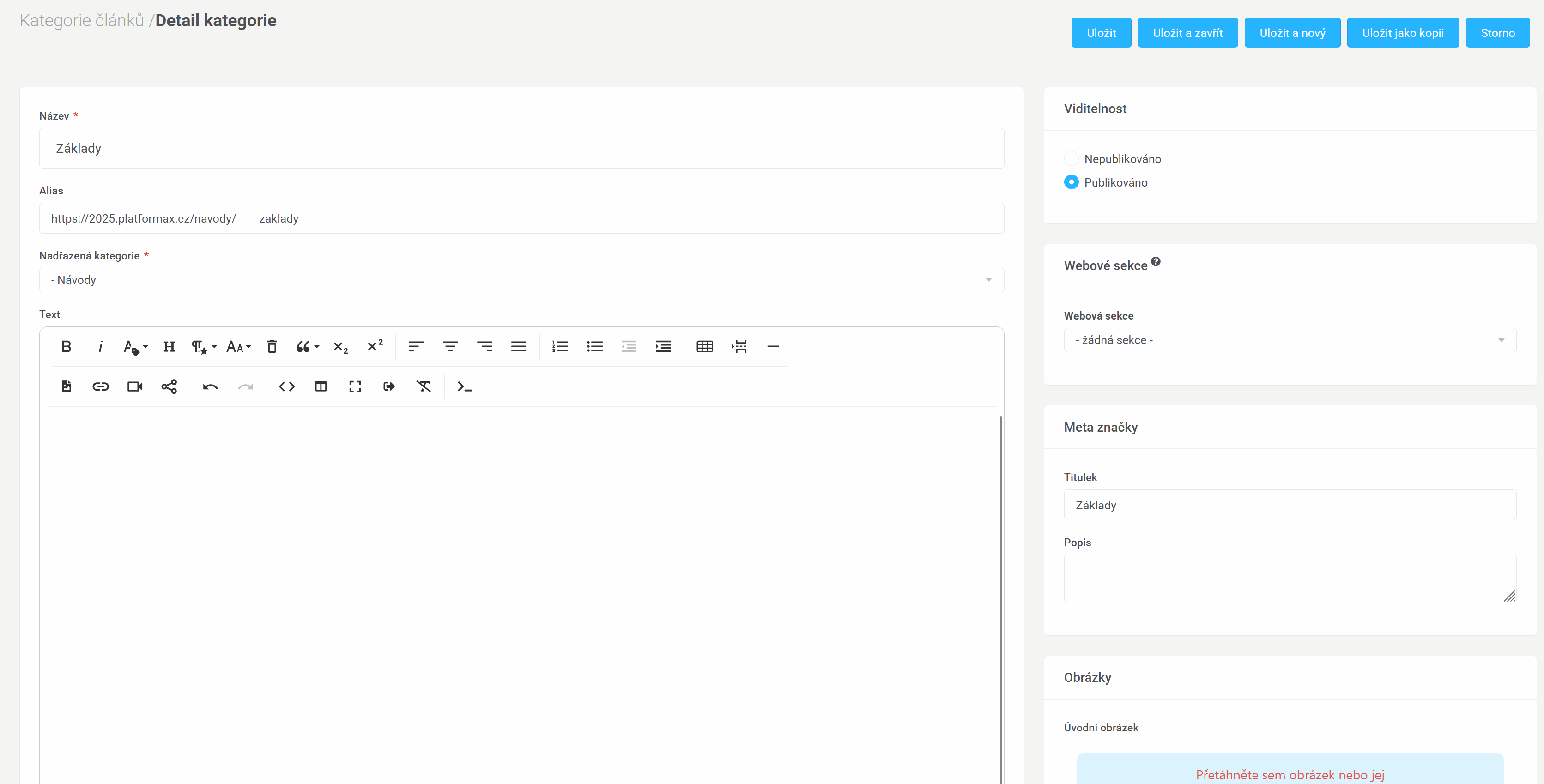 - v případně potřeby zařazení jednoho článku do více kategorií je nutné vytvořit kopii